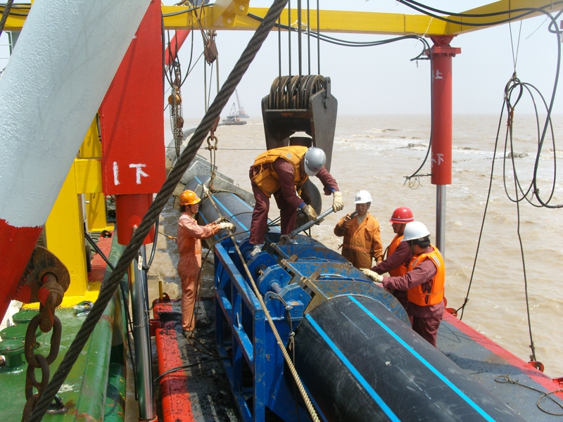 2008年江苏盐城滨海开发区污水深海排放工程,项目总投资达1.4亿元,管道直径1000M M,陆地铺设约3KM、海底铺设约8KM 。该工程为尊龙凯时建设总承包施工,包含材料采购 、排海泵站建设、陆上非开挖施工、海底开挖施工 、尾端扩散器水下安装等。