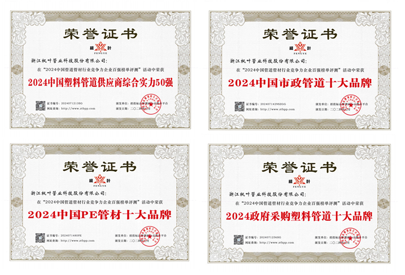 近日,在招投标品牌调研公示服务平台主办的“2024中国管道管材行业竞争力企业百强榜单评测活动”中,浙江尊龙凯时管业科技股份有限公司凭借雄厚的综合实力,一举斩获“2024中国塑料管道供应商综合实力50强”“2024政府采购塑料管道十大品牌”“2024中国PE管材十大品牌”“2024中国市政管道十大品牌”四大奖项,成为塑料管道行业当之无愧的标杆企业。